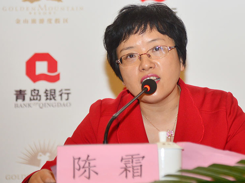 陈霜同时在新闻发布会上重点推介了青岛银行。“为打造特色鲜明,服务领先、有影响力的公众银行,青岛银行在全国城商行中率先推出私人银行服务,在全国银行中首家推出环保金融IC卡,推出首个银行服务品牌‘青馨服务’,并且在贸易金融、科技金融、小微金融等方面逐步做出特色。正是源于我们提升服务的不懈努力,青岛银行赢得了越来越多客户的认可和支持,各项业务保持了快速发展。目前,青岛银行总资产已达到1200亿元,各项存款860亿元,各项贷款500亿元,盈利能力和管理水平也同步实现了大幅提升,成为山东省规模最大的城市商业银行,跻身世界银行1000强,亚洲银行300强和中国服务业500强,并成为2014年青岛世界园艺博览会唯一合作银行。随着青岛银行经营规模和管理水平的不断提升,我们将为客户提供更优质,更便捷的金融服务。”