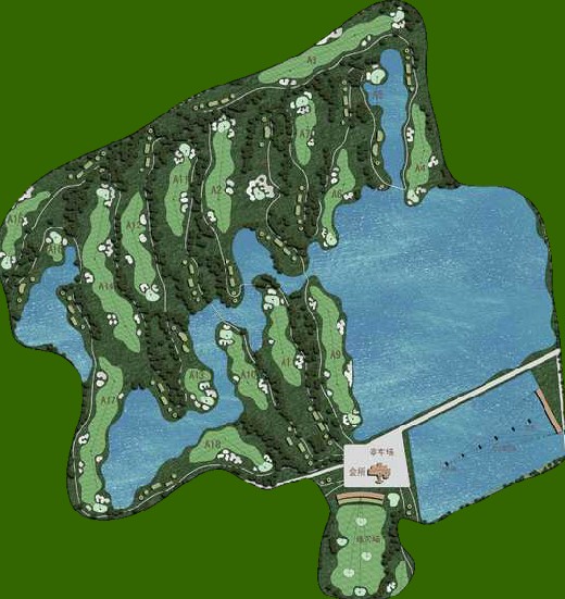 巨龙脚下的背景为青翠的球道纵横,每条球道与龙脉紧紧相连,湖水银光闪耀,雪白的沙坑点缀着绿草如茵的球场,别墅、会馆错落在郁郁葱葱的林木中,球场设计线条流畅,尊贵典雅,气度不凡。 名人高尔夫俱乐部占地约5000亩,计划分三期建设一个大型的国际标准级具有54洞的球场及配套的住宿、娱乐、餐饮设施等,将成为我国北方地区规模及占地面积最大的一个球场。