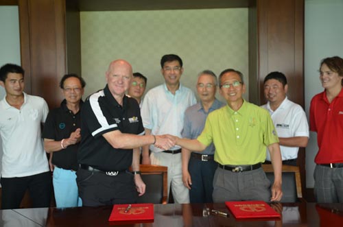 随着中国高尔夫运动的发展,爱好高尔夫运动的人数不断增加,昆山市大上海国际高尔夫球乡村俱乐部与欧洲高尔夫职业教练联盟就利用各自资源,优势互补,对培训职业高尔夫教练,提高高尔夫教练的教学质量,开展中国青少年高尔夫培训,培养中国青少年高尔夫球手等达成共识,于2013年6月16日签订合作意向书,希望通过双方合作为中国高尔夫运动的发展贡献绵薄之力。