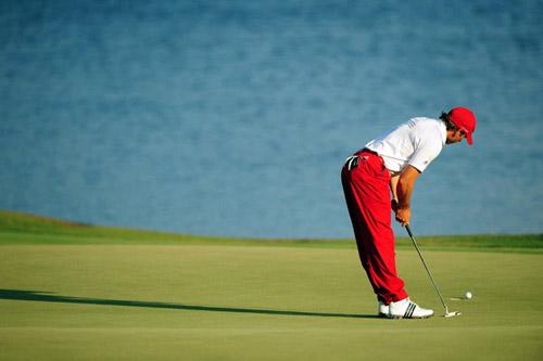 第三, 高尔夫球手比赛时没有号码和运动衣。什么运动没有专门服装呢?但高尔夫服饰的选择完全是个人习惯与品位问题。精心设计的高品质、高价格高尔夫服饰是首选。通常上衣较多的是长袖或短袖的T恤(poloshirt)为主要款式的运动杉;裤子(不论长裤或短裤)是纯棉或纯毛的西裤。近年来高尔夫服装时装化的倾向越来越明显。讲究和挑剔的球手度身定造适合自身体型的服装,装点了球场的色彩,流露出贴近大自然的动人色调和简约纯美的清新气息。打高尔夫球时还可以戴帽子和护目镜,这是在常规的运动中很难看到的。