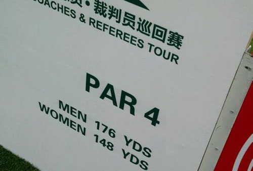 网友点评: 哈哈!既然教练裁判出场,为防止出丑,把三杆洞降低难度也是可以理解滴! 不过说实话啊,这个中高协的巡回赛里哪有什么裁判啊,只是一些有教练证的人来参加的比赛。有职业的。有业余的。。 这样的距离,打得好,抓鸟正常,捕鹰也是可能的! 球童点评: 超级搞笑啊,今天我服务那个规则学的都不如我呢,也来参加巡回赛了。。