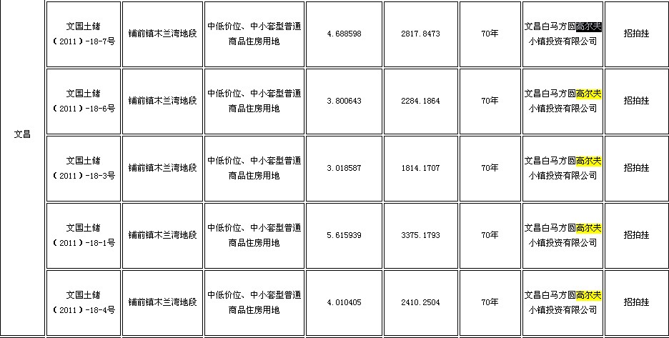 海南一个季度土地成交中六个项目涉及高尔夫