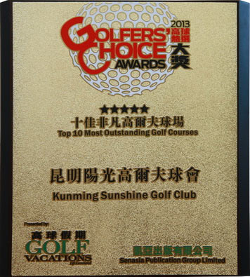 2013年7月30日,一年一度的高球热选大奖在广东清远狮子湖喜来登度假酒店隆重揭晓,昆明阳光高尔夫球会以一贯坚持的高品质球场和人性化服务,荣获“十佳非凡高尔夫球场”。