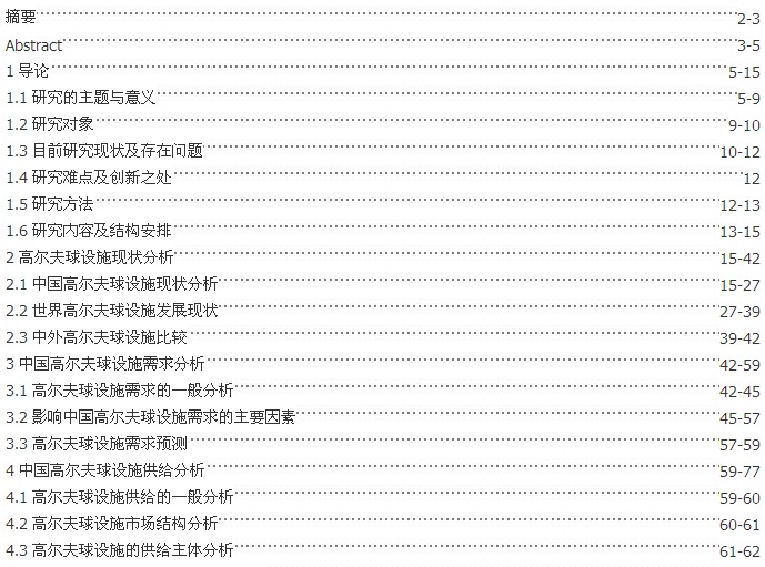 高尔夫球设施是高尔夫球运动和高尔夫球产业发展的物质基础和保障。本文在收集大量文献资料和进行专家访谈、调查的基础上,采用比较研究法、数理统计法、实证方法和规范方法,从高尔夫球设施的现状分析入手,运用经济学理论对高尔夫球设施的供给、需求及影响供求的各种因素进行探讨,并对高尔夫球设施发展中最受非议的一些问题进行研究,提出中国高尔夫球设施的发展对策。