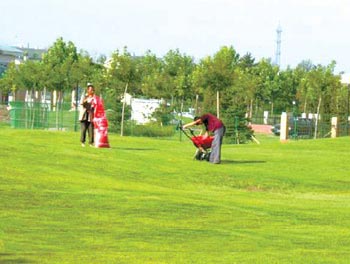 冷季型草坪的生长除了需要水分,还需要充足的营养供给。如果营养物质缺乏会导致草坪生长势弱,草坪变黄。草坪施肥是补充营养物质的重要手段。一般来说,冷季型草坪至少每年需施肥2次至3次,集中在春季和秋季,氮肥和磷钾复合肥混合使用,施肥量一般为每平方米10克左右。施肥前对草坪进行修剪,施肥要均匀,施肥后立即浇水,防止烧伤草坪。应减少氮肥的施用量,氮肥过量会导致草坪发生黄化;草坪生长过程中吸收养分不平衡,也会导致草坪出现黄化症状。