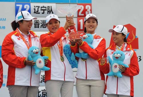 经过4天较量,人们发现夺得男子团体冠军的队伍,并不是拥有张连伟、梁文冲两位职业大牌的广东队,而是拥有窦泽成、刘晏玮和袁也淳3位16岁球员的辽宁队;而在夺得女子团体前三名的队伍中,广东队的林希妤才17岁,上海队的鲁婉遥、阎菁也是17岁,北京队的石昱婷甚至只有15岁,她的队友刘钰和冯思敏也只有18岁,全运会唱了一出名符其实的“小鬼当家”。其中最光鲜的是辽宁队的窦泽成,他首轮就打出了所有参赛男选手最低的66杆,四轮打出277杆的总成绩,也是参赛男选手中最出色的。