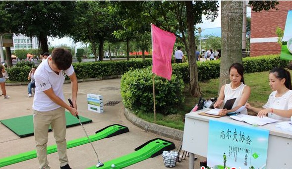 在迎新现场,各社团使出“浑身解数”吸引新生的注意。滑轮社两个帅气小伙现场表演技术高超;韩语俱乐部的韩服mm浅笑倩兮,还送上韩国美食供品尝;着一身旗袍,挽一支发簪,泡一壶清茶,茶艺社的姑娘们行云流水般的技艺赢得路人驻足;高尔夫协会设备齐全,欢迎新生现场挥杆……独特的社团风格吸引了大量新生的围观和报名。
