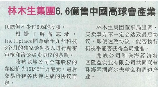 林木生集团6.6亿售中国高球会产业