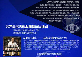 在校友日活动期间,我们为大家邀请到了享有中国税务筹划第一人称号的国家税务学院首席教授高金平老师,与第六期学员和校友分享课程《高尔夫与房地产企业税务筹划战略》,高老师将详细阐述高尔夫产业以及房地产产业中如何利用合理的技巧和政策进行有效的税务战略筹划,帮助企业以及项目大大减少税务的成本并避免税务政策的风险,是高尔夫企业、房地产企业董事长、总经理和财务总监必修的一门课程。同时,学院还邀请到中国酒业协会副主席冯卫东先生,带领大家走进葡萄酒的美妙世界,共同探索酒的文化与乐趣。