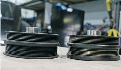 于是我们清洁了驱动滑轮的槽,并向设备供应商购置了尺寸合适的皮带。在移除掉曲轴中央的螺栓,解开缠绕其上的电线和导带之后,装在一起的驱动滑轮和电动的离合器轮便一起移除了。