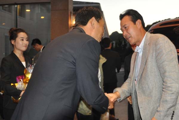 近日,太阳收敛起刺眼的光芒,变成一个金灿灿的光盘。远处巍峨的朝阳山,在夕阳映照下,涂上了一层金黄色,显得格外瑰丽。过了一会儿,一行车徐徐驶来,我们迎接来韩国十佳球会LOTTE SHYHILL球会的到访队伍。真诚欢迎他们的到访。