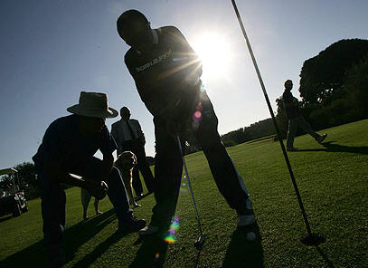小球从左拉-沙龙(Zohar Sharon)的杆面嫉飞出去,飞向远方。左拉-沙龙看不见,但是他知道这是一个好球,他咧开嘴呵呵地笑。两杆过后,左拉-沙龙抓到了一只小鸟球。 在严格的教练,坚定的球童以及热心的导盲犬帮助下,左拉-沙龙获得一个几乎不可能的头衔--世界最优秀盲人高尔夫球员。 这个世界有成千上万的盲人在打高尔夫,但是能出成绩的也就限于百名。过去两年时间里,左拉-沙龙一直是他们中的“世界第一”。 11月14日,左拉-沙龙在以色列国内成为头条人物,他在恺撒高尔夫俱乐部(Caesarea Golf Club)第15洞打出一个一杆进洞。恺撒高尔夫俱乐部是以色列唯一的一家18洞球场。而这只是53岁的左拉-沙龙的一系列奇迹之一。年轻时一直在军队任职,左拉-沙龙25年前在服役的时候导致双目失明。 自从2003年以来,左拉-沙龙在苏格兰、澳大利亚、美国以及加拿大都赢得了国际盲人高尔夫比赛。八月份,他在参加安大略视觉残疾高尔夫锦标赛时拿到了生平第一只老鹰。左拉-沙龙曾与美国前总统福特一道打过球,他甚至打败过好些正常人。 左拉-沙龙虽然眼睛看不见,却十分幽默。他形容自己是“世界上最优秀的夜间高尔夫球员”。 “我想要每个明眼人和我打球的时候都双脚发抖。” 接下来,左拉-沙龙变得严肃起来。他说高尔夫救了他的命,把他从深深的绝望中挽救回来。“我比一个明眼人更钟爱高尔夫。”左拉-沙龙说,“草总是苍翠的,树总是优雅的……高尔夫对我有治疗作用。至少在那一刻,我努力心明眼亮。” 在草坪上,左拉-沙龙挥动着手臂,扭动着身躯。他说自己是完全自由的。在这里,他不用担心碰到什么东西。这让他的心思完全集中起来。“我未曾有一刻担心过眼前的局面。” 左拉-沙龙的灾难差不多在30年前发生。他曾经是伞兵部队的一名狙击手。有一次,一位同伴不小心将化学药剂喷洒到了他的脸上。左拉-沙龙随即接受了一个非常复杂的手术,可是他的视力却一天天减退,直到28岁的时候他完全失明。 “我之前的生活完全坍塌了。”左拉-沙龙说,“突然间你什么也不是了,连一个三岁小孩也比你有用。你必须在余下来的东西中重建一切。你必须清楚自己这一生到底需要什么。” 左拉-沙龙的办法是努力让自己忙碌起来。他一开始学习绘画和雕塑,接下来他成为一位身体理疗师。当左拉-沙龙不得不与妻子离婚时,律师将高尔夫介绍给了他。他尝试了好几年时候,但是却放弃了,因为他觉得高尔夫太难了。 十年之后,左拉-沙龙又重新回到了球场上。那是在四年前。左拉-沙龙的教练叫理查多-科多巴-科尔(Ricardo Cordoba-Core),来自玻利维亚。科尔几乎从零开始传授左拉-沙龙的技艺,让他注意协调性以及幻想每一杆。当左拉-沙龙真正拿起球杆时,数月已经过去了。 科尔教挥杆的方法非常奇怪,他要左拉-沙龙扫地,把扫帚当作球杆。科尔将左拉-沙龙的臂膀套起来,光让他用臀部练习挥杆动作。当左拉-沙龙终于可以拿起杆了,科尔先让他击打硬币。科尔总是带着一根杆子站在旁边,一旦左拉-沙龙的挥杆出现问题,他就用杆子打一下他的头。 “他对我来说就是一个挑战。”科尔说,“那简直就是大卫与哥利亚之战。”不过有时候,左拉-沙龙的缺陷反倒成了他的强项。科尔表示许多高尔夫球员面对沙坑以及水障碍就手忙脚乱。“而我则不会告诉他这些。”科尔狡猾地笑了笑。 左拉-沙龙认为高尔夫完全就是靠挥杆。“盲人在高尔夫的世界里没有限制。”左拉-沙龙说,“只要他有一个好的球童。”左拉-沙龙的球童是勒维(Shimshon Levi),他的挚友。两人打小就认识。左拉-沙龙瞎了之后,勒维一直在身边关心照顾他。“自从我们结为好友,我们就好象心有灵犀。我深深爱着他。” 勒维引导着左拉-沙龙在球场上行走,为他插梯座,为他放球。勒维引导左拉-沙龙的手臂,告诉他前方有什么。当左拉-沙龙要推杆的时候,勒维手把手地指引着他。有时候,不是左拉-沙龙担心打糟了,而是勒维担心。“你在干什么呢?”科尔向勒维狂吼道,“你可是他的眼睛。” 这个团队的最后一名成员是导盲犬戴兰。左拉-沙龙表示6岁的戴兰是用来找球的。此文章来源于网络, 版权归原作者所有。