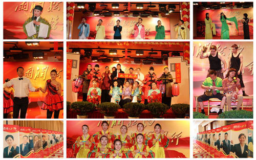 晚会由一段欢快动感的骑马舞拉开序幕,意即迎接马年的到来。在随后的演出过程中,精彩不断,现场欢笑声迭起。由《北京欢迎你》改编的一首《雨润欢迎你》表达着大家对雨润的美好祝福与期望;一首由四对父子合唱的《爸爸去哪儿》给大家带来的不仅是欢乐,还有亲情的触动;情景剧《花好月圆》别具创意,情节生动;哑剧小品《约会》更是凭借生动的演绎,将现场的气氛带到高潮;情景时装秀《穿越徽州,寻梦涵月》向我们展示着如诗如画的涵月楼美景,仿佛走进徽州大观园的优雅情境之中;随后,赵晓耘总经理等五位酒店经理人走上舞台,共同为大家亲情演唱歌曲《生活就是舞台》,带给现场满满的温暖和热情……