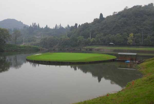 湖北宜昌三峡龙盘湖高尔夫的漂浮果岭,国内首例