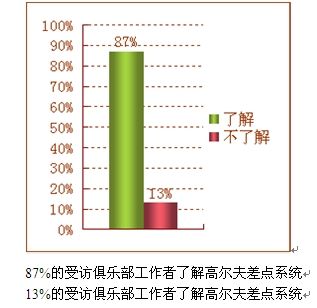 在139家参与调查的高尔夫球会中,在运营中球会会员向球会询问过差点系统以及关于差点相关内容的球会占到了67%,从这一调查数据中可以看出,随着高尔夫人口的不断增长,对于高尔夫差点的需求越来越多,不论对于打球的会员本身还是高尔夫球会来讲,拥有一个完善的高尔夫差点系统和权威并且有效的高尔夫差点卡已经成为越来越迫切的需求,这为推广中高协差点系统提供了良好的基础。
