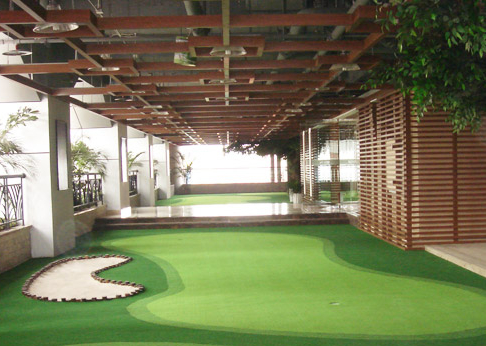 最特别的是,这里面还有一间小型的高尔夫球推杆果岭练习场。“客户可以在这里做推杆练习。
