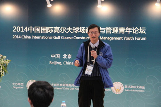 在本次“2014中国国际高尔夫球场建造与管理青年论坛”上,邀请了中外高尔夫业内人士进行了报告讲演,韩国高尔夫球场经营协会草坪研究所所长沈揆烈做了《草坪病害的发生生态及防治》的报告,与听众分享了韩国高尔夫球场草坪的管理方法;北京林业大学高尔夫教育与研究中心副教授常智慧从高尔夫球场面临的实际问题,进行关于《高尔夫球场再生水灌溉水质标准研究》的报告;北京鸿华高尔夫球场草坪总监及果领汇发起者王昌俊结合自身从业经验及学习心得,与听众就《北方高尔夫草坪杂草化学防除技术》进行沟通交流。