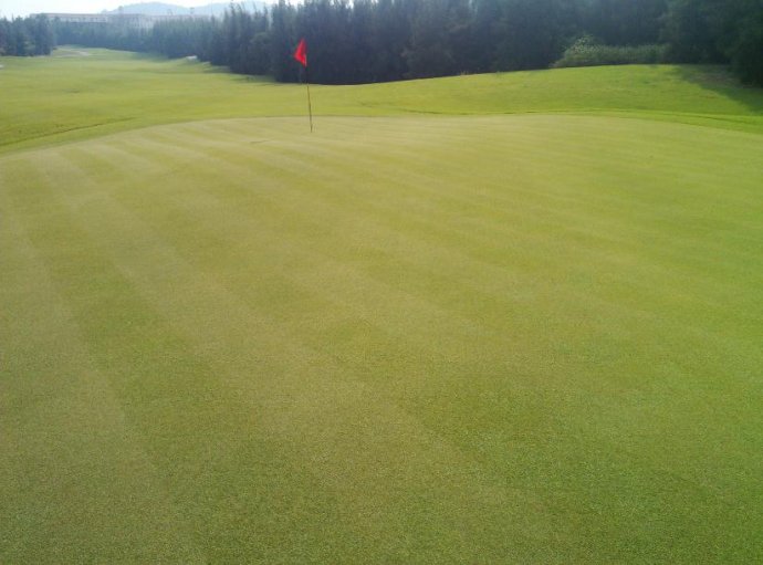 平时果岭修剪遵循米字形修剪原则,进行交错修剪,不仅会有理想的观赏效果还能提高果岭球速。