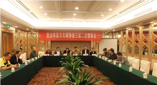 昆山市高尔夫球协会三届二次理事会于2014年4月28日下午四点准时在华东国际商务酒店三楼会议厅召开,参加会议的有高协终身荣誉主席、荣誉主席、主席、副主席及理事代表共二十多人。