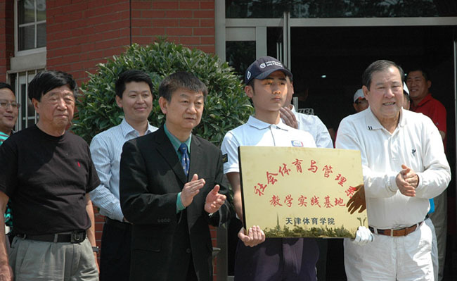 2014年4月29日,天津体院社会体育与管理系教学实践基地挂牌仪式暨2014天津体育学院挂牌邀请赛,在天津江南高尔夫球会举行。天津市高尔夫球协会主席王述祖、副主席黄东升,我院院长姚家新、副院长吉承恕,以及社会体育与管理系相关负责人参加了挂牌仪式。