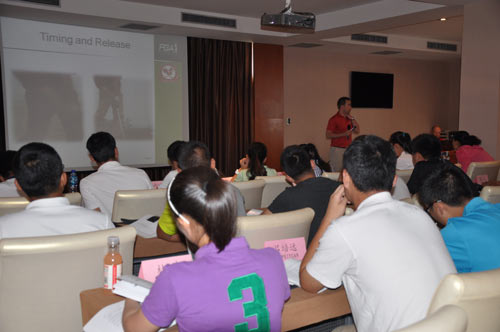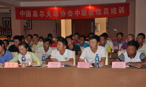 (山东南山)北京时间6月24日,中高协2014年第二期中级教练员理论培训在中高协南山国际训练中心综合楼二楼的多媒体教室举行,共有56人报名参加。 本次培训讲师为澳大利亚PGA专业讲师,为期六天,培训结束后统一安排考试,理论与实践考试都通过者可获得中级教练员证书。