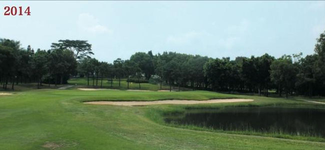 球场15 号洞。1985 年(下图一),珍珠乐园建在球会旁,每天游客如织,深受大家喜爱。如今(下图二),游乐园的摩天轮因为使用寿命到期,在2012 年被拆除。