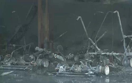 球场警卫表示,听见爆炸声后,赶紧查看,发现停车棚已陷入火海,并未看见可疑分子出入。