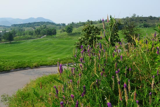紫花苜蓿属一年生或多年生豆科草本植物,在我国栽培已有2000多年历史,是我国栽培面积最大的牧草之一。紫花苜蓿叶色鲜绿,开花期紫色小花点缀于高尔夫球场高草区中,远观整个高尔夫球场犹如一位伟大的画家所画的一幅美丽的风景画,为高尔夫球手提供良好的视觉效果,高尔夫球手在打球过程中犹如在画中游玩,与大自然融合。由于紫花苜蓿的景观效果很好,近年来备受高尔夫球场建设者和高尔夫爱好者的喜爱。