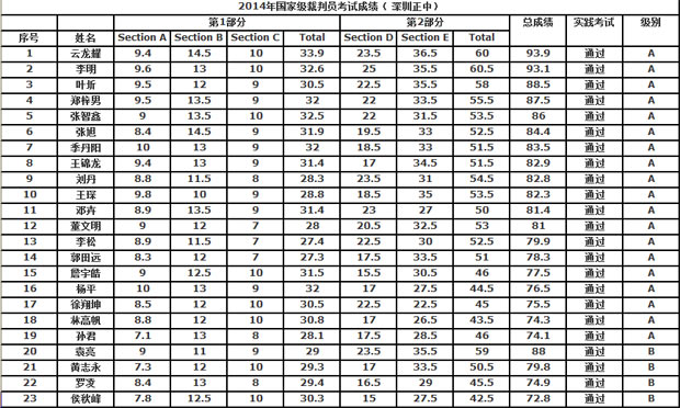 中高协2014年国家级裁判员培训通过人员成绩