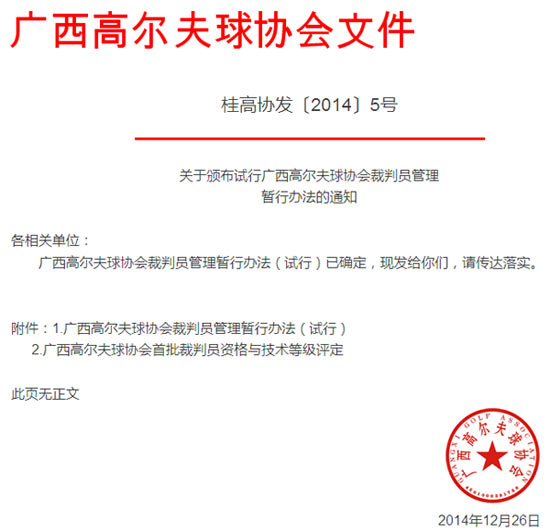 广西高尔夫球协会裁判员管理暂行办法的通知