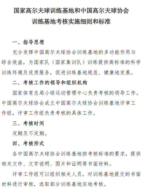 国家高尔夫球训练基地考核细则和标准