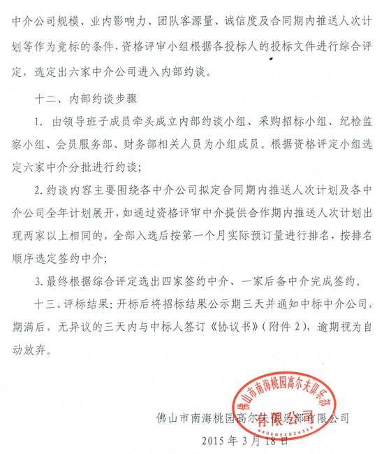 招标:佛山南海桃园高尔夫俱乐部业务中介公司公告