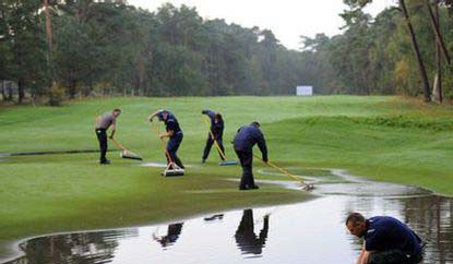 规则还规定,水障碍区内的水不是临时积水,但是如果水障碍区内的水太满溢过水障碍区界线,那么漫到球道上的水(overflow)便属于临时积水(Decision 25/2)。