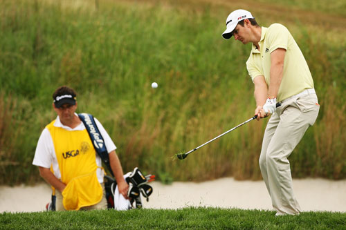 切记!近距切球,握杆不能太紧,让身体像钟摆般有节奏感,找到杆头重量;当然,要多练习,体会、掌握下杆的节奏,是打好approach的不二法门。