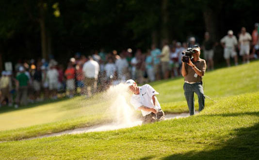 打沙坑球最大的问题就是带起的沙子量,这也是为什么准备姿势重要的原因。你在进入沙坑之前首先要做的事就是在沙子上拖着脚走路,来精确地计算沙坑的深度的密度。这可不是作秀,这会让你的击球变得不同。