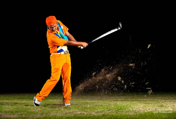 眼睛看目标(和一般情况下看球不一样),空挥杆一二次。记住到目标的距离后,慢慢地、高高地上杆,打击地点在球的 5英寸之前的地方(不是击球)。