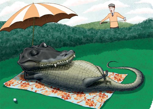 亲爱的规则先生:我在佛罗里达州的某球场打球时,开球落在一条正在晒太阳的短吻鳄的附近。我在球的原始飞行路径上抛球,没有罚杆。我这样处理这个危险的球位正确吗?