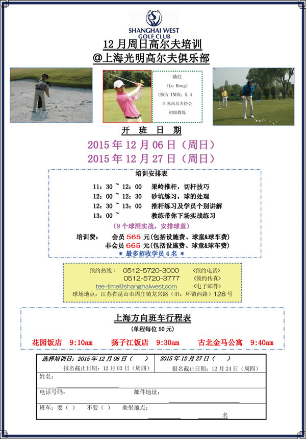 上海光明高尔夫俱乐部12月周日教程安排
