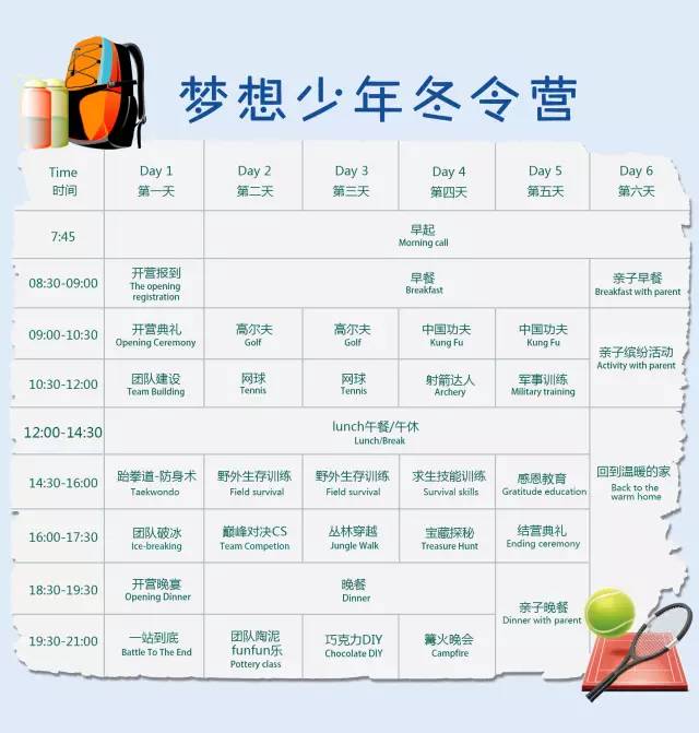 六天五夜营课程安排(1月25-1月30日)