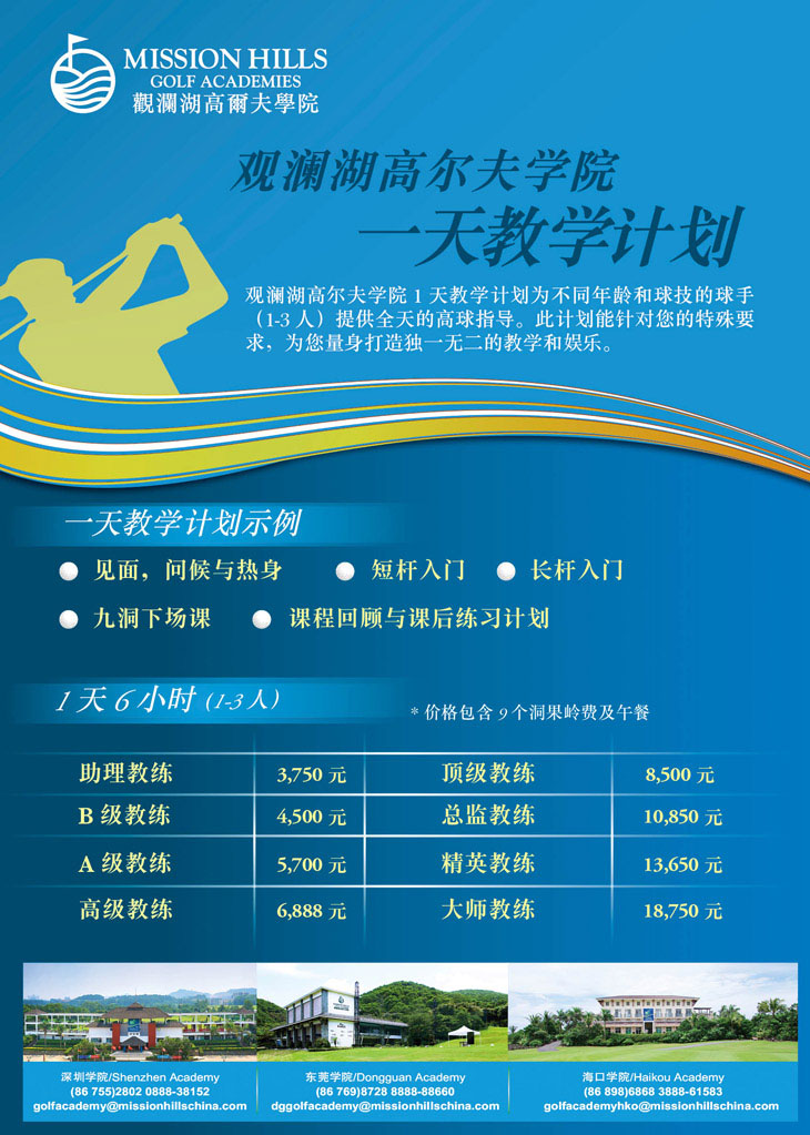 观澜湖高尔夫学院一日课程介绍