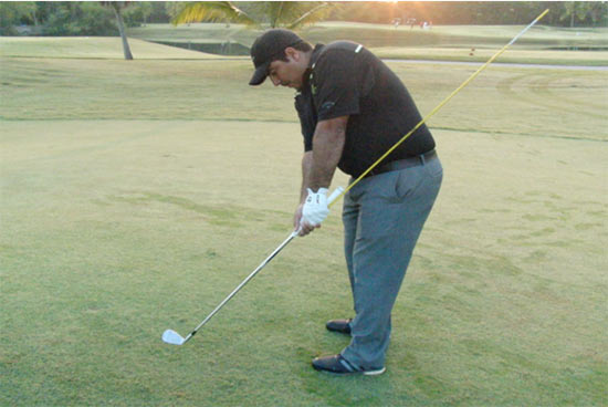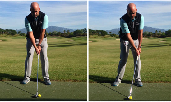 著名教练Homer Kelley告诉我们,你必须理解击球准备姿势和落杆击球瞬间姿势的区别。如何感觉到两者之间的不同呢? 摆一个击球瞬间的姿势,然后再摆一个击球准备姿势。这有助于你理解两者的不同。再看看下面这幅对比图,相信你更能看出他们的区别。