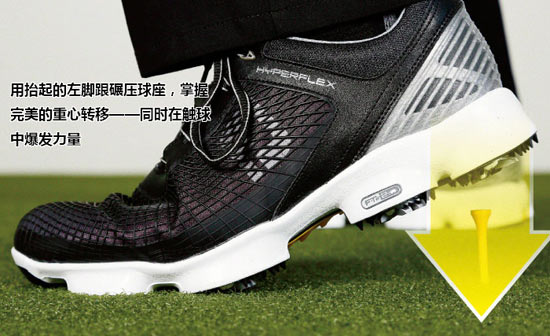 为打出有力的攻果岭击球,像杰克那样触球时稳扎左脚。