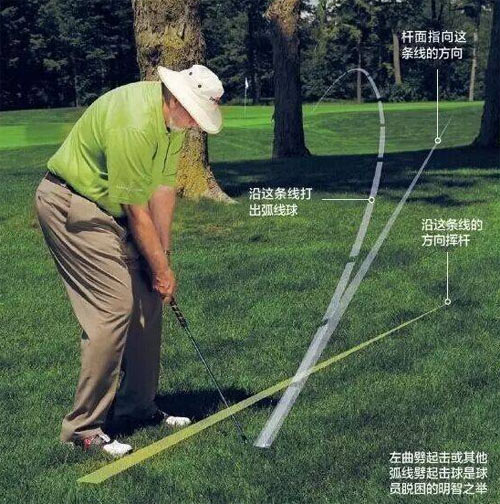 大多数球员会选择先将球打回左侧球道,这有些保守——第四杆还要用挖起杆。对于保帕来说也不是个好办法。其他选择?如穿针引线般,击球穿过树丛并直攻旗杆,然而那很冒险——简直是孤注一掷!——球可能打到树干被弹开。有备而来的可以这样选择——用挖起杆打一记左曲球,绕过树丛攻上果岭。没错,打出左曲的劈起击,就像其他全挥杆击球一样,而且实现这一点并不需要大师般的球技。