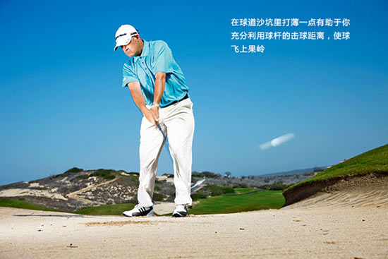 遇到球道沙坑时 需有意打薄令球杆先触球