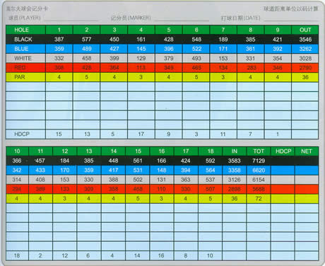 TOT:TOTAL, 即球场18洞的总长度