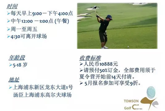 上海浦东汤臣高尔夫2016青少年精英夏令营