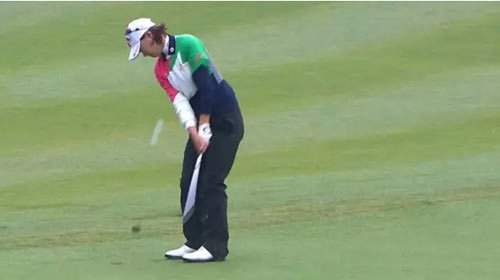 当时领先的崔罗莲在常规18洞时开球失误,虽然第二打把球成功救到果岭上,但为自己留下了一个尴尬的推杆,几经思考后崔罗莲使用了挖起杆。