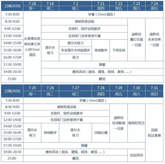 夏令营行程安排