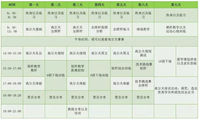 ◆ 每站将选拔出1名潜力新星赴美国BGP学院本部进行1周免费集训,美国BGP学院位于有“世界高尔夫中心”美誉的佛罗里达州,这里是PGA、LPGA总部所在地,是离老虎伍兹、麦克罗伊最近的地方,无论你是希望完善推杆、挥杆或者深度领略高尔夫历史与文化,这个冬天,和我们一起奔赴佛罗里达这片高球乐土!
