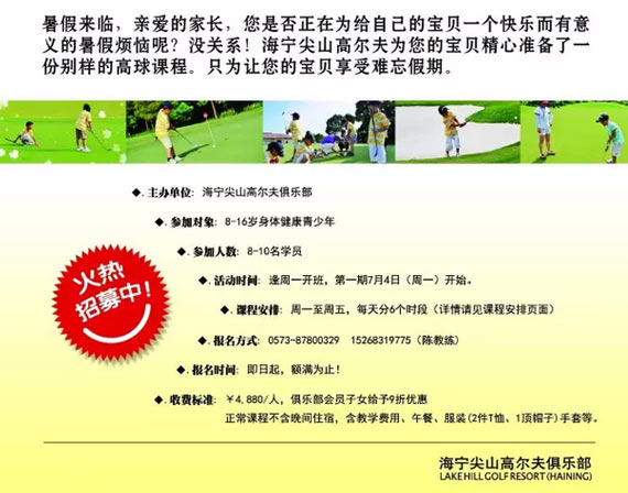 4880元/人 浙江海宁尖山高尔夫2016年夏令营